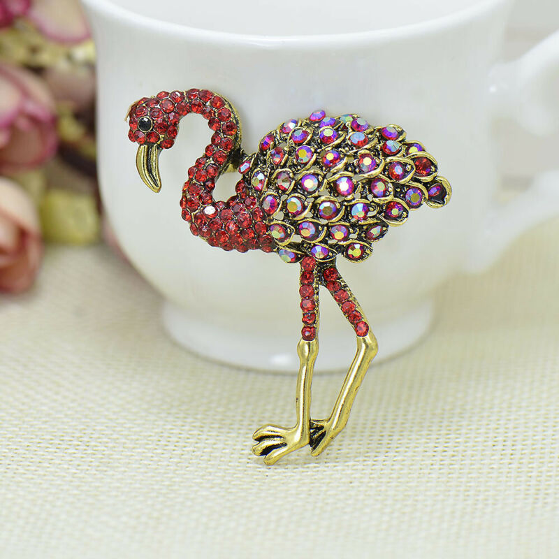 Title (ebay affiliate link): Luxury Flamingo Brooches Antique Gold Plated Red Crystal Rhinestone Brooch Pin