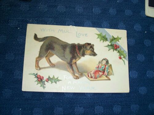 Vintage antique postcard NEW YEAR 1908 DOG angel doll Davidson Bros Publisher