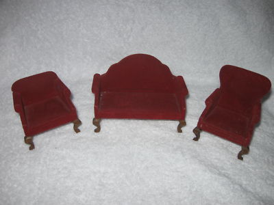 DOLLHOUSE ANTIQUE COUCH & CHAIRS LIVINGROOM FURNITURE