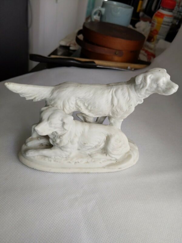 ANTIQUE VICTORIAN GEBRUDER HEUBACH WHITE BISQUE PORCELAIN GERMAN DOGs FIGURINE