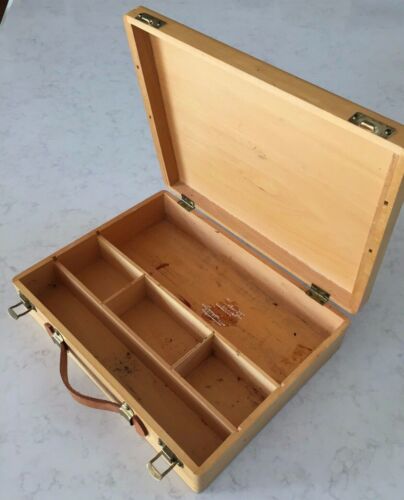 Title (ebay affiliate link): Antique Vintage LARGE WOODEN DOVE-TAILED CORNERS BOX & LEATHER HANDLE ca 1940s