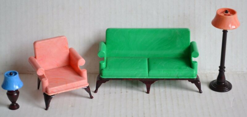 Title (ebay affiliate link): Vintage IDEAL Lot Dollhouse Living Room FURNITURE Couch, Chair, Floor/Table Lamp