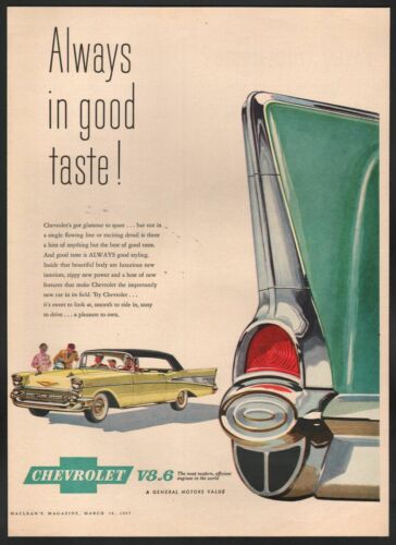 1957 Canadian Chevrolet print ad yellow Bel Air Convertible