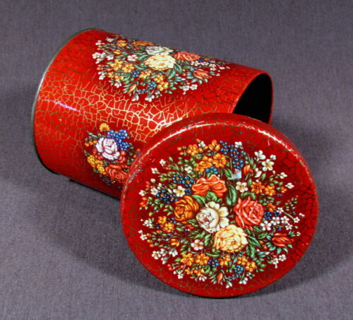 DAHER ROUND DECORATIVE CANDY, COOKIE, TEA TIN CONTAINER / 4.25" DIA. X 5.75"