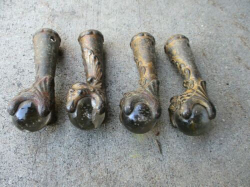 Vintage Antique SET~4~CLAW BALL PIANO STOOL FEET Furniture legs CAST IRON GLASS