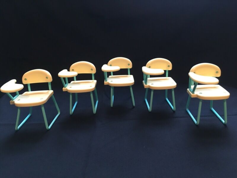 Title (ebay affiliate link): 5 Vtg Mattel Barbie School Desks Chairs Yellow Classroom Furniture Mattel 1990