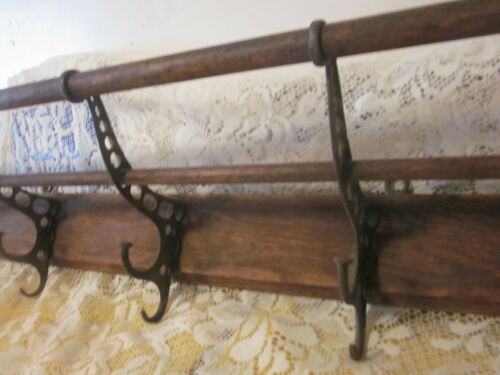 Title (ebay affiliate link): Vintage Oak Cast Iron Coat Rack Train Trolley- Super Nice!