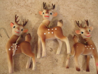 Title (ebay affiliate link): 3 JAPAN VINTAGE RUBBER REINDEER FIGURES~HEADS TURN