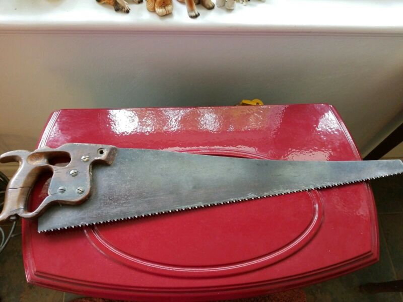 Vtg Disston Phila Hand Saw w/Finger, Thumb Hole Guide Handle, 5 TPI on 26" Blade
