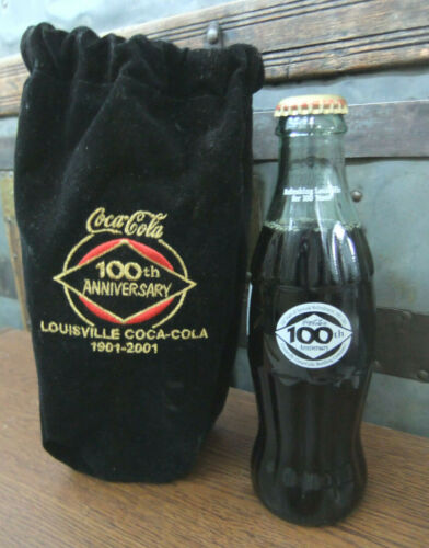 Title (ebay affiliate link): COCA COLA 100TH ANNIVERSARY FULL BOTTLE & BLACK BAG LOUISVILLE KY 1901-2001 COKE