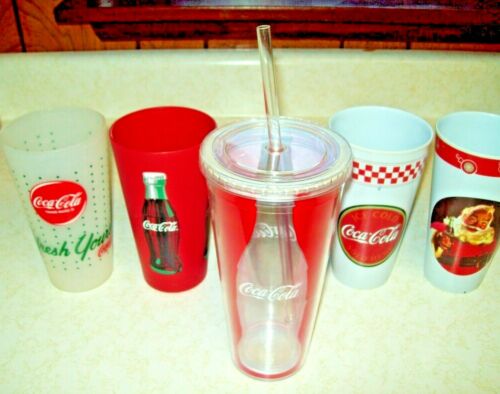 Title (ebay affiliate link): Coca Cola Double Wall Tumbler With Straw + 4 Hard Plastic Tumblers-Gibson-NEW