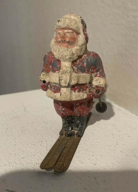 Title (ebay affiliate link): Vintage Lead Barclay Santa on Skis w/ Metal Pole & Skis Made in USA