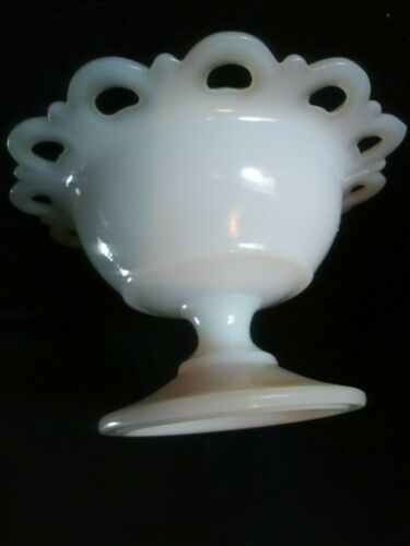 Title (ebay affiliate link): Vintage milk glass Heart shaped scallop lace edge pedestal small nut bowl 5"