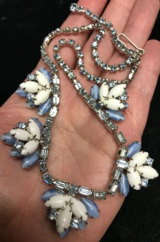Title (ebay affiliate link): Vintage blue rhinestone milk glass stone clusters Necklace