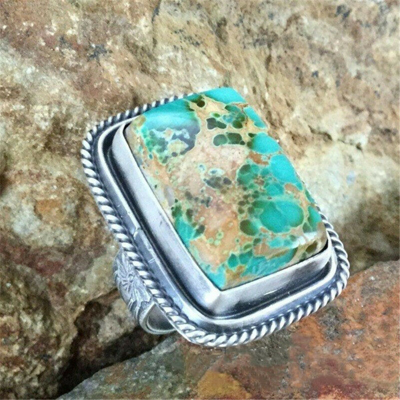 Title (ebay affiliate link): Antique Silver Natural Square Turquoise Gemstone Wedding Jewelry Ring size 7