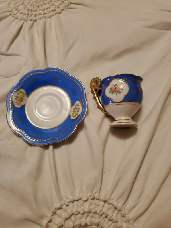 Wales China Mini Tea Cup And Saucer Blue Flower