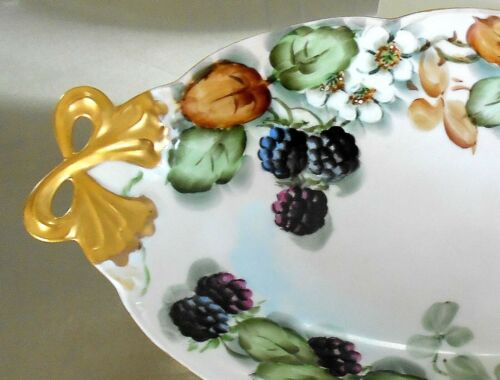 Antique JHR Alice Bavarian Hand Painted Serving Dish "Blackberries" .