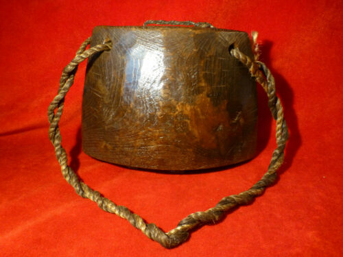 EXC LARGE RARE ANTIQUE EARLY PRIMITIVE HAND CARVED WOODEN BELL OX BELL COW BELL