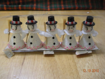 VINTAGE SPUN COTTON & CARDBOARD SNOWMEN JAPAN ORNAMENTS