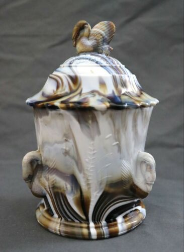 Title (ebay affiliate link): Rare Antique Slag Glass Swan Spooner Lidded Bowl Challinor Taylor EAPG Vtg
