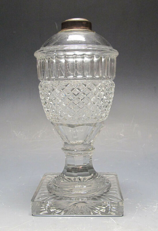 Antique Mid 1800''s Pressed Glass Sawtooth Font Oil Lamp Square Base SOLID NR yqz