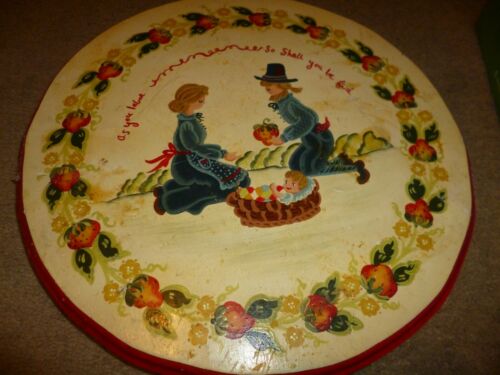 LARGE VINTAGE RETRO WOOD HAND PAINTED LAZY SUSAN STRAWBERRIES
