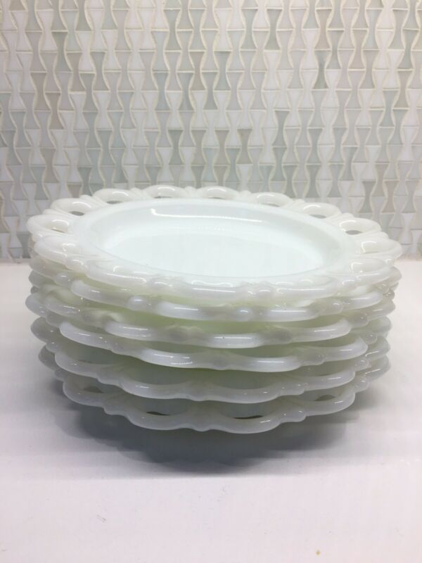 Vintage Milk Glass Lace Edge 6in Plates. Set Of 6