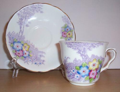 Colclough-Longton England-Bone China-Tea Cup & Saucer-Flowers & Lavender Trees