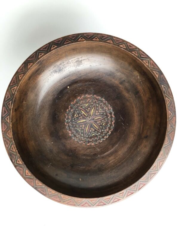 Vintage handmade Solid wood carved boho bowl Made in Yugoslavia