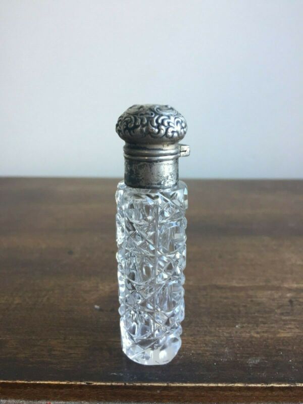 Antique Sterling Silver & Cut Glass Hinged Perfume Bottle