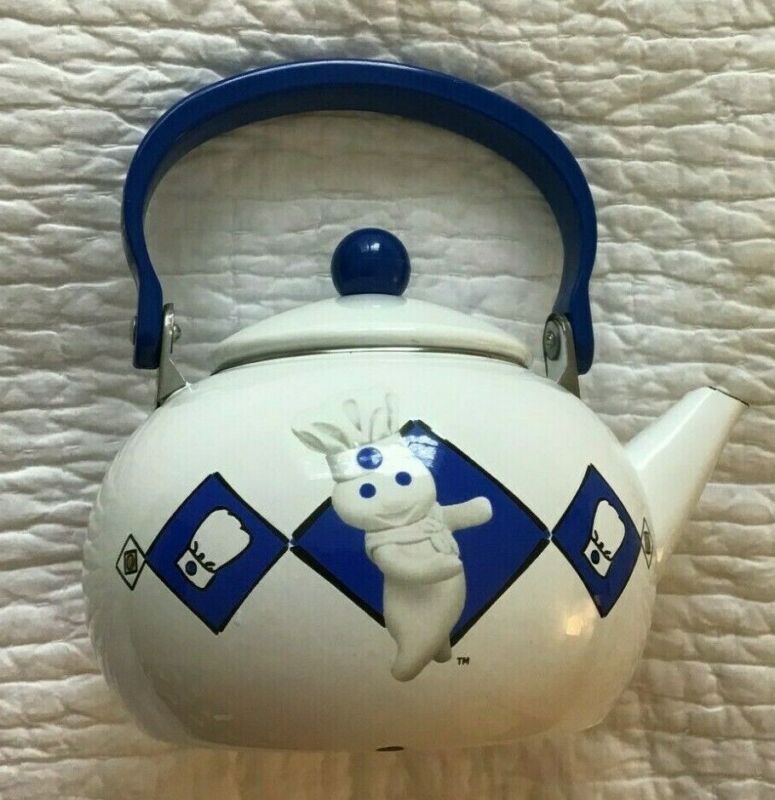 Title (ebay affiliate link): PILLSBURY DOUGHBOY ENAMEL TEA KETTLE 1999 POPPIN'' FRESH TEA POT