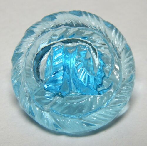 1930''S LONDON BLUE TOPAZ DEPRESSION GLASS BUTTON w/WOVEN ROPE RELIEF DESIGN