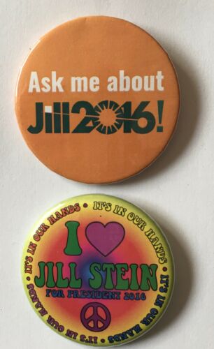 Title (ebay affiliate link): Two 2 1/4" Jill Stein 2016 Green Party Presidential Campaign Pins