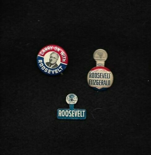 3 original FDR Franklin D. Roosevelt Presidential campaign buttons: coattail