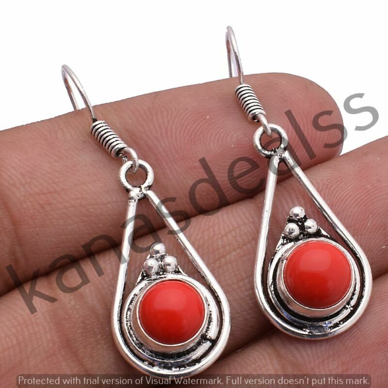 Coral Earring Ethinic Overlay Jewelry Handmade Antique Earrings E-6090