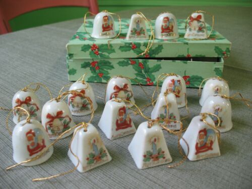 LOT Vintage CHRISTMAS ORNAMENTS Early Japan BELL ORNAMENTS in ORIG BOX 1940''s