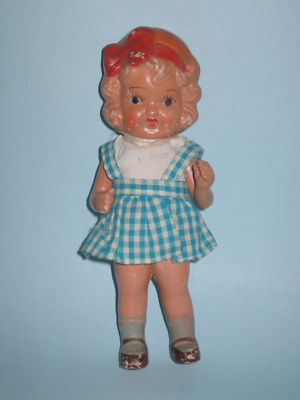 Antique Bisque Doll w gingham dress Chic Shabby decor