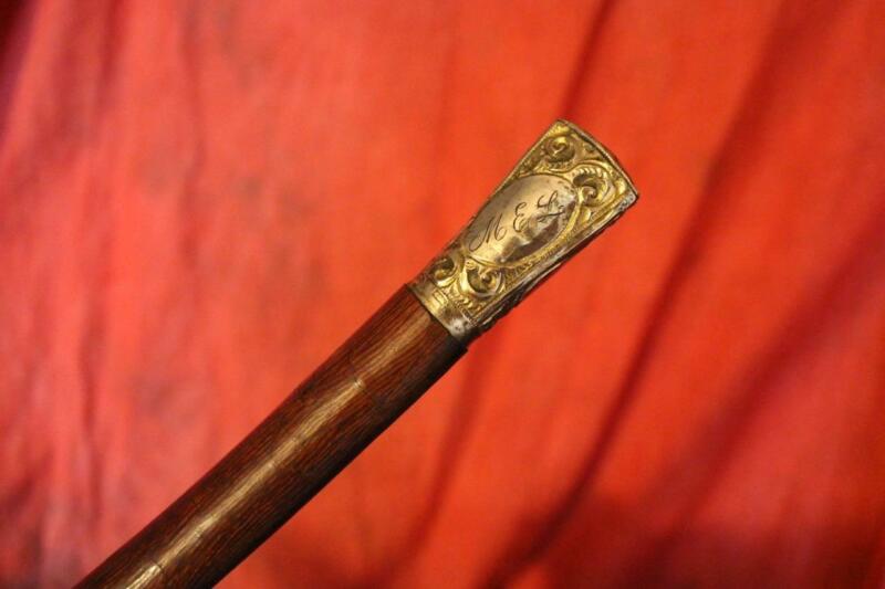 Title (ebay affiliate link): Fine Gold Handled Victorian Cane W/Natural Cherry Shaft & O.G. Brass Tip