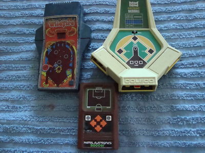 Lot of 3 VTG. 1970's hand held, bat.op. sports games.