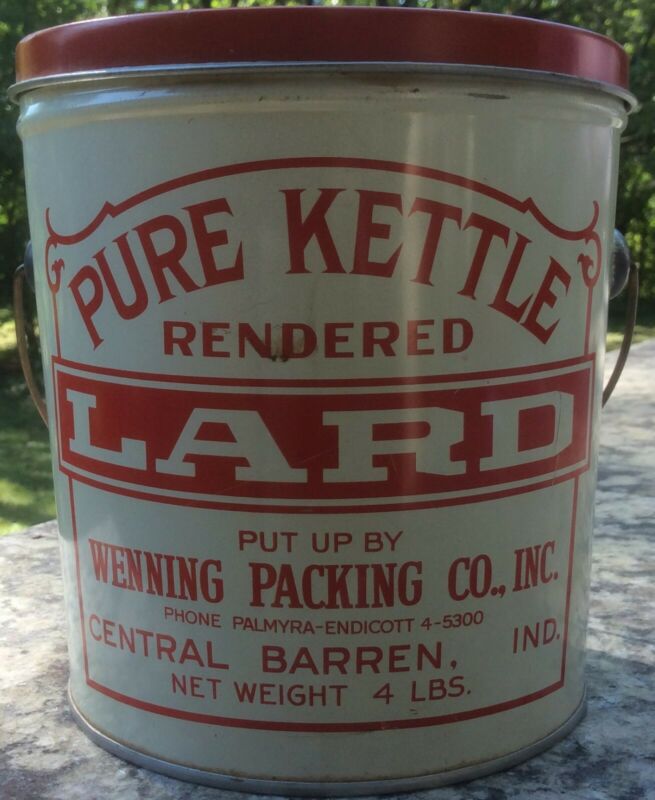Title (ebay affiliate link): Vintage Lard Can 4 Lb Great Condition Wenning Red and White