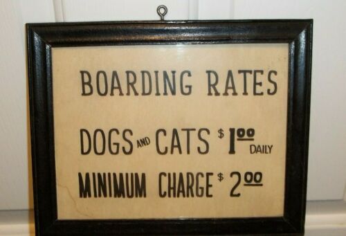 VINTAGE VETERINARIAN PET BOARDING RATES $1.00 DAY DISPLAY SIGN CAT DOG KENNEL NR