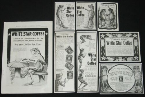 Title (ebay affiliate link): Vtg 1900s WHITE STAR COFFEE~Antique Print Ad Lot 8~FROG Art Decor Paper Ephemera