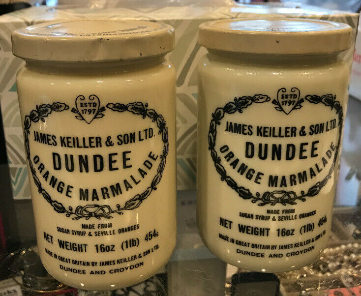 James Keiller & Son 16oz Dundee Orange Marmalade Milk Glass Jars Set Of 2