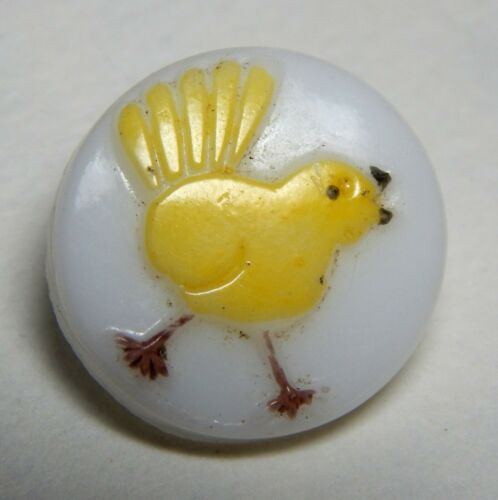 Title (ebay affiliate link): ADORABLE 1940''S MILK GLASS CHILD''S BUTTON w/COLORFUL "BABY CHICK"
