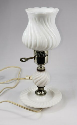 Vintage White Milk Glass Swirl Electric Lamp Hurricane Glass