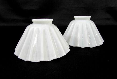 Vintage Petticoat style milk glass light shades pair - pleated - 3.25 T - 5.75 W