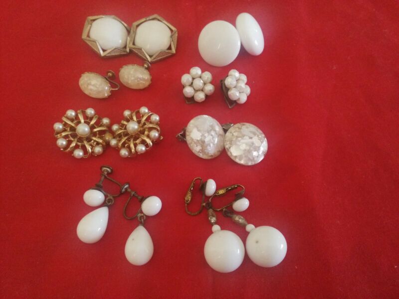 Vintage clip on and screw back earrings lot, milk glass, Italy, confetti style!