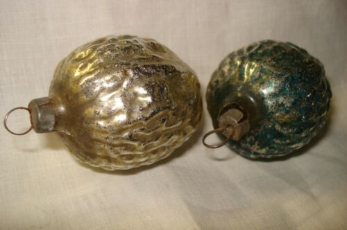 ANTIQUE VICTORIAN MERCURY GLASS FEATHER TREE CHRISTMAS ORNAMENT WALNUT GERMANY