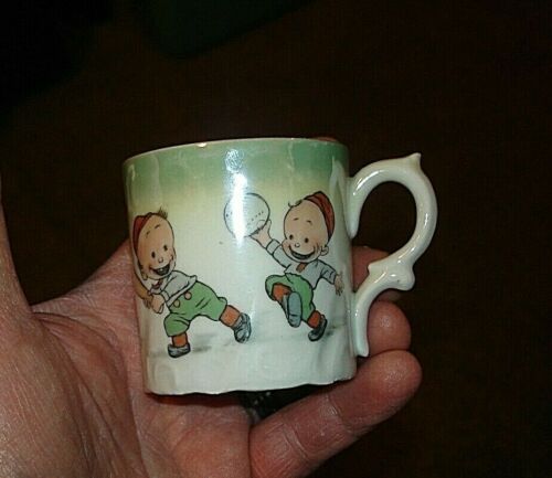 Vintage Germany Porcelain Child''s Cup - Boy Playing Baseball