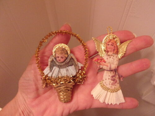 Title (ebay affiliate link): PAIR Antique Look Christmas Ornament, ANGELS SCRAP---FEATHER TREE, Handmade